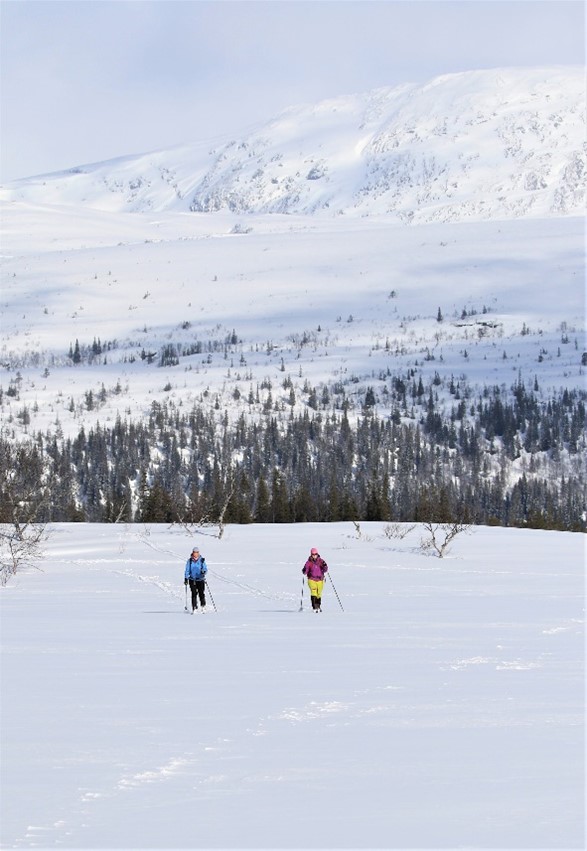 Fig 1. Left side: Field work at beautiful Lifjellet. Right side: We are following the tracks, searching for scats