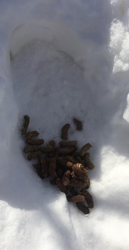To address this, we conducted a study at Lifjellet in Lierne municipality. Over three consecutive years (2019—2021) we followed the tracks from willow ptarmigan from winter to summer. (Fig.1). Weekly visits from March to June allowed us to collect fresh scats from these birds (Fig. 2). Through microsatellite analyses, we obtained information about sex and species, while DNA metabarcoding provided novel insight into the willow ptarmigan’s diet. Additionally, satellite data provided information about the arrival of spring (NDVI), and snow cover throughout the season (NDSI), and enabled us to explore how these abiotic factors influence willow ptarmigan diet across years.